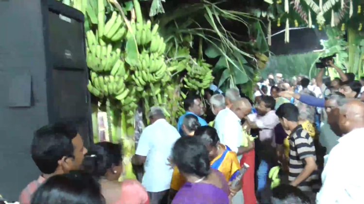 இதனால் எல்லாருடைய பார்வையும் காந்தியே வந்து மனு அளித்ததால் சிறிது நேரம் பரபரப்பு காணப்பட்டது நிறைவு பெற்றவுடன் கூட்டத்திற்கு வந்திருந்த பொதுமக்கள் தோரணம் கட்டியிருந்த கரும்பு வாழை இளநீர் ஆகியவைகள் பிடுங்கி அள்ளி சென்றனர்.