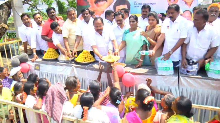 வேலூரில் திமுக தேர்தல் அறிக்கை தயாரிப்புக்குழுவின் கருத்து கேட்பு கூட்டம் நடைபெற்றது - முதல்வர் ஸ்டாலின் பிறந்த நாளை முன்னிட்டு பொதுமக்களுக்கு பிரியாணி மற்றும் இனிப்புகள் வழங்கப்பட்டது.