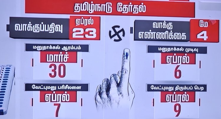 ஏப்ரல் 23ஆம் தேதி தமிழக சட்டப்பேரவை தேர்தல்! ஒரே கட்டமாக நடைபெறும் என தேர்தல் ஆணையம் அறிவிப்பு!