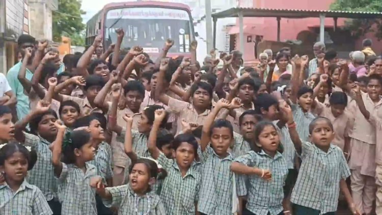 ஆசிரியரை பணி மாறுதல் செய்யக்கூடாது எனக் கூறி பள்ளி மாணவர்கள் வகுப்புகளை புறக்கணித்து போராட்டம். மேலும் அவ்வழியாக வந்த அரசு பேருந்து சிறை பிடிப்பு.
