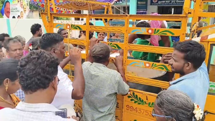 நிகச்சியில் கூட்டம் அதிகமாக இருப்பதை போல் காட்டிக் கொள்வதற்காக நூறு நாட்கள் பணியாளர்களை அழைத்து வந்திருந்தனர்.