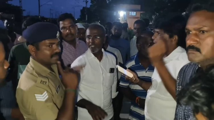 எனவே ரயில்வே கேட்டில் நுழைந்து திருப்பதியில் இருந்து கோயம்புத்தூர் செல்லும் எஸ்.வி.எம்.டி ரயிலை மறித்து போராட்டத்தில் ஈடுபட்டனர்.