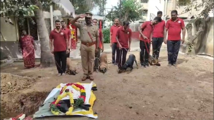 இதற்கு மோப்ப நாய் பிரிவு காவலர்கள் மலர் மாலை மற்றும் மலர் வளையம் வைத்து உரிய மரியாதை செலுத்திய பின்னர் நல்லடக்கம் செய்தனர்.