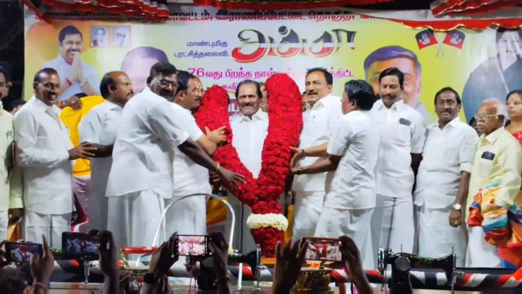 முன்னதாக, எம்ஜிஆர் மற்றும் ஜெயலலிதா படத்திற்கு மலர்களை தூவி மரியாதை செலுத்தினார்கள்.