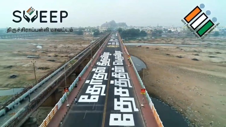 "தேர்தல் திருவிழா.. தேசத்தின் பெருவிழா"! காவிரி பாலத்தில் தேர்தல் ஆணையம் விழிப்புணர்வு பிரச்சாரம்!